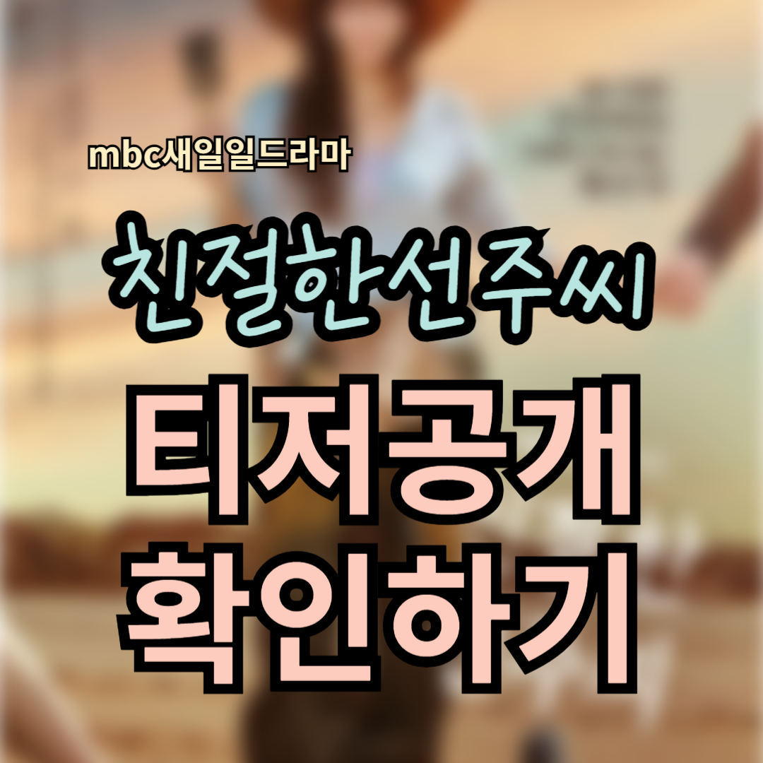 연예, 스포츠, 중요사건 등의 이슈를 알려드립니다. 2024. 11. 6. 09:4611월 18일, MBC가 새로운 일일드라마 ‘친절한 선주씨’를 선보입니다. 이 드라마는 평범한 삶을 사는 주인공이 용기 있는 변화를 시도하며 새로운 삶을 개척해가는 과정을 그린 작품인데요. 겉으로는 밝고 상냥한 주인공 피선주가 숨겨둔 이야기와 복수극을 담고 있어, 이미 많은 예비 시청자들이 기대감을 갖고 기다리고 있습니다.