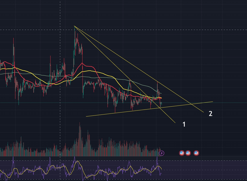 왜냐면 거래량이 점점 줄고 있기 때문에 삼각수렴은 끝난 것이 아니라 보아도 됩니다.