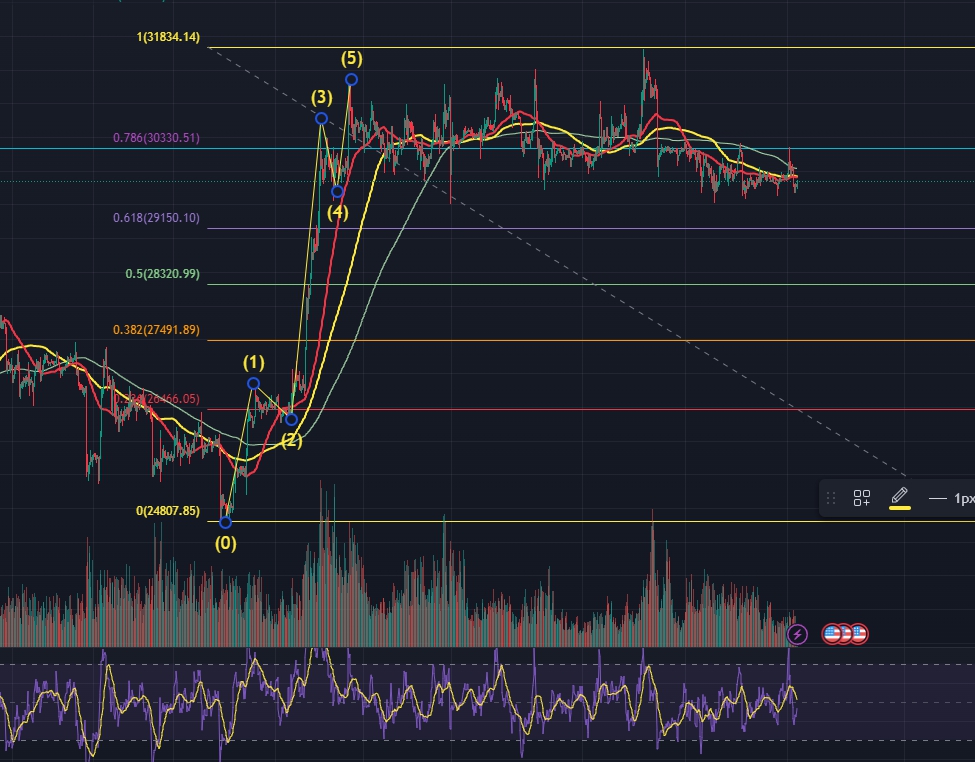 현재 비트코인의 경우 횡보장으로 보고 있습니다. 이유인 즉, 29600-30420사이에서 박스권을 만들고 있기 때문입니다. 이런 경우 거래하기 보다는 안전하게 관망하는 편이 훨씬 나을 것이라 봅니다.